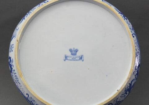 A Mason’s Ironstone China cheese dish, decorated in the “Pagoda pattern”, also called the Turner Willow pattern, having the transfer crown mark to the back. Circa 1815 – 1825.