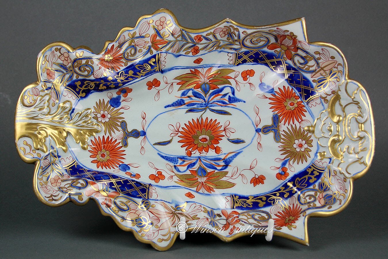 A Mason’s ironstone china dessert dish, decorated in the “Golden Chrysanthemum” pattern, having the single impressed line mark to the back. Circa 1813 – 1820.