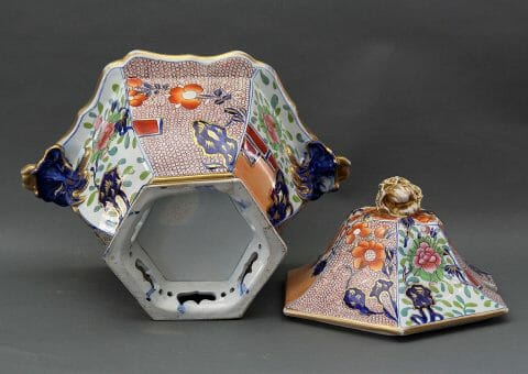 A rare Mason’s Ironstone China octagonal soup tureen, richly decorated in a segmented pattern. Unmarked.