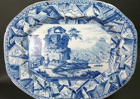 This Mason’s Ironstone China meat platter featuring the Italianate Landscape pattern is a stunning example of early 19th-century ceramic artistry. This large platter showcases a beautifully detailed scene inspired by classical Italian landscapes, with ruins, trees, and an idyllic pastoral setting. The design, rendered in monochromatic blue, captures the romanticised view of Italy popular during the period. Crafted from durable ironstone, this platter combines both practical use and decorative appeal, making it a prized collectible for its timeless design and Mason’s signature craftsmanship.